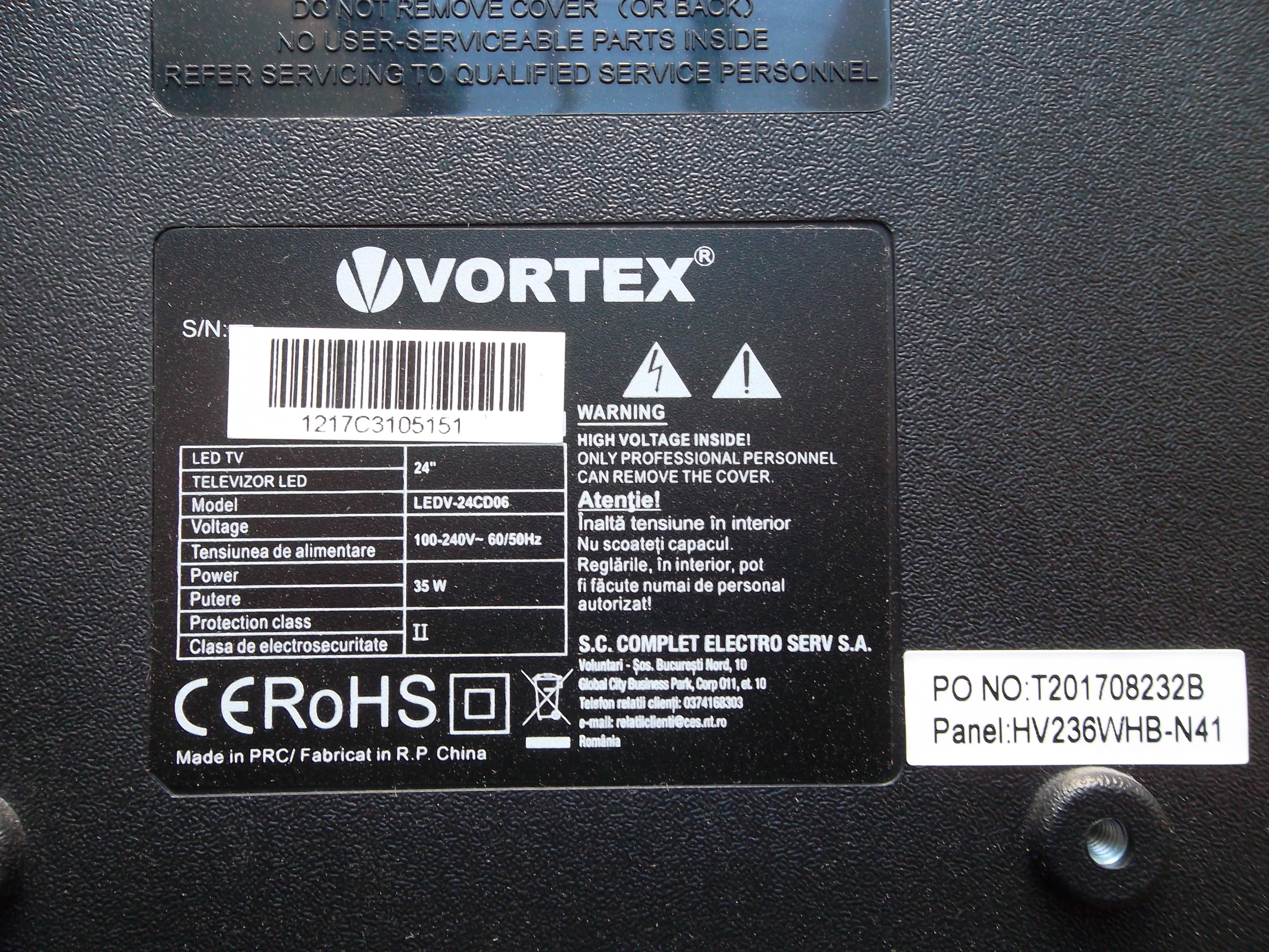 MAINBOARD LED TV VORTEX LEDV-24CD06,DISPLAY HV236WHB-N41